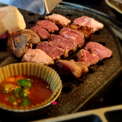 고기가 초벌되서 나오는데 숯향이 듬뿍 묻어 있는게 한입 먹자마자 입안에 숯향이 쫙 퍼지는게 짱 맛있어요.