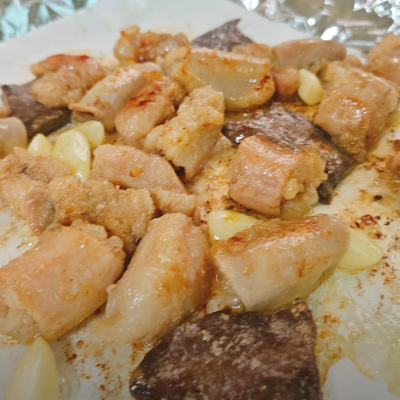 곱창은 초벌해서 주시면 조금 더 구워 먹으면 돼서 편했어요. 저는 부추무침이랑 마늘도 같이 구웠습니다.