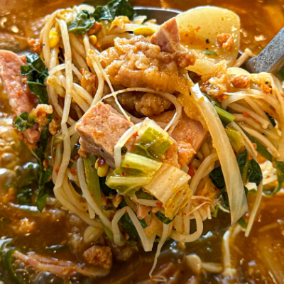수제햄을 써서 칼칼하면서도 담백한 국물맛~ 부대찌개의 끝은 역시 라면사리네요.