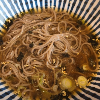 파와 참깨로 풍미를 더했습니다. 국수를 씹으니 메밀 향이 제대로 느껴지고, 국물은 짜지 않으면서 감칠맛이 뛰어나요.