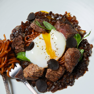 소고기 안심, 수란, 트라플로 구유의 풍미를 완성한 도원스타일만의 프리미엄 볶음 짜장면