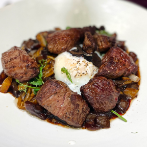 두툼한 안심을 특제 스테이크 소스로 볶아 불맛과 풍미가 살아있는 요리