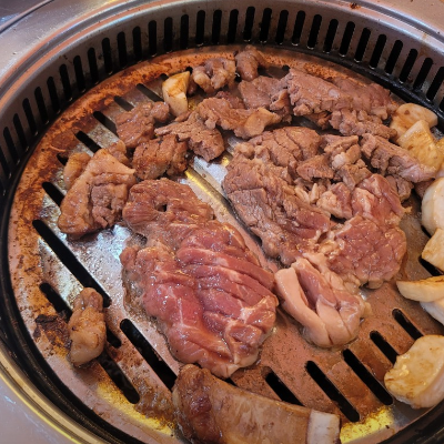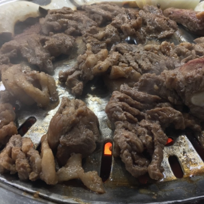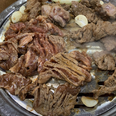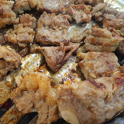 돼지갈비는 맛있었지만 텐트 같은데서 먹었는데 너무 추웠어요.