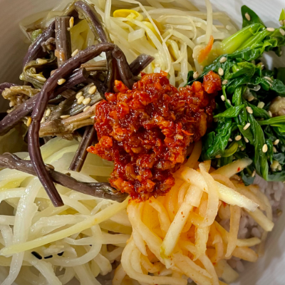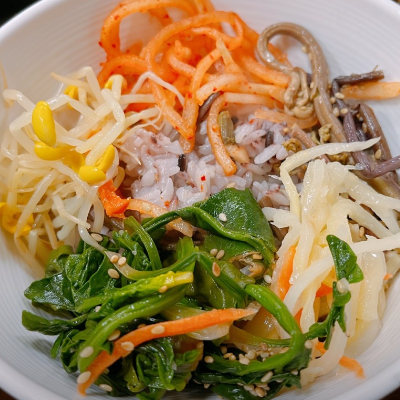각종 나물과 김가루 참기름 토하젓을 섞어서 비빔으로 먹으면 기가 막히게 맛있어요.