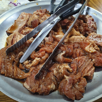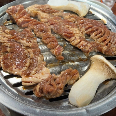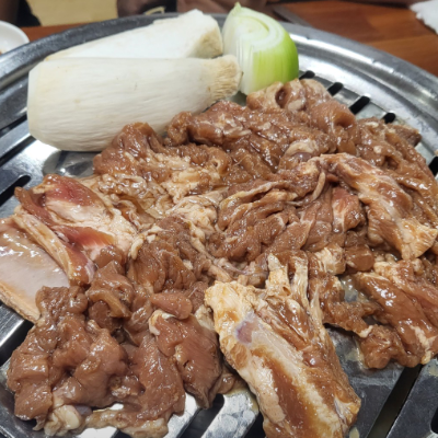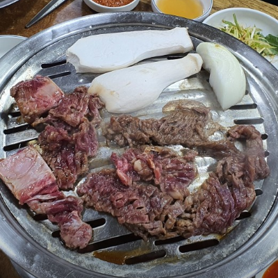 돼지갈비는 맛있었지만 텐트 같은데서 먹었는데 너무 추웠어요.