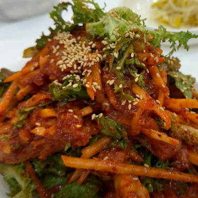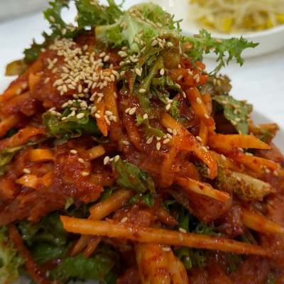 제 원픽은 서대회무침이었어요. 양념 감칠맛이 장난 아니고 넘 맛있었습니다! 밥에 비벼 먹었는데 그냥 먹었을 때보다 더 맛있었어요.