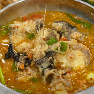 아귀탕은 매운탕 스타일의 시원한 느낌입니다. 아귀살 덩어리가 많이 들어있었고 해장하기에도 좋아보였어요.