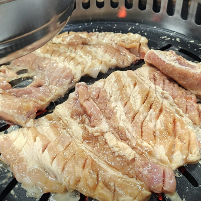 고기 때깔부터가 벌써부터 다른 삼겹살 자태입니다. 지글지글 구워주는데 와~ 진짜 맛나요.