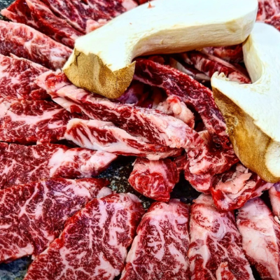 메인인 고기는 너무 신선해서 육즙이 살아있고 너무 고소합니다. 소도 맛나지만 이집은 직접 재워서 만든 돼지갈비가 미쳤습니다.