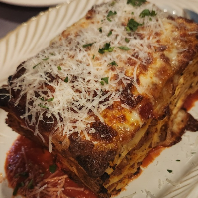 당일에 급하게 예약했는데 운이 좋게도 마지막 남은 라자냐를 먹을 수 있어서 좋았어요. 마지막이라 훨씬 큰 조각을 받아서 행복했습니다.