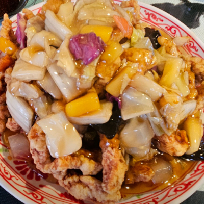 가지튀김이 젤 유명하지만 제 입맛엔 탕수육이 요즘 찾기 힘든 옛날 탕수육맛이라 좋아요. 소스가 부어져 나와도 한참 바삭합니다.