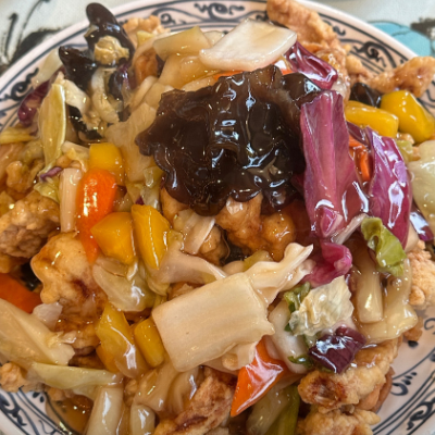 가지튀김이 젤 유명하지만 제 입맛엔 탕수육이 요즘 찾기 힘든 옛날 탕수육맛이라 좋아요. 소스가 부어져 나와도 한참 바삭합니다.