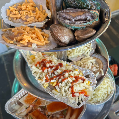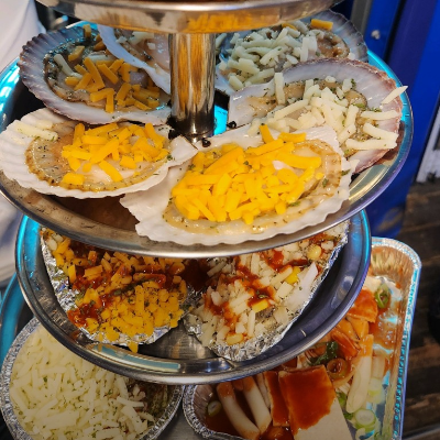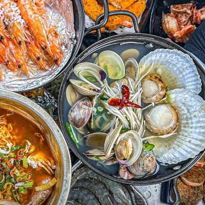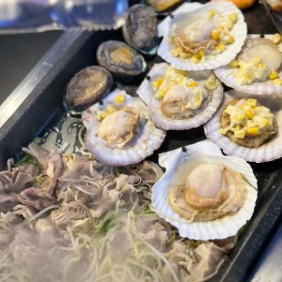 지금껏 가본 조개구이집중에서 비쥬얼이 가장 화려한곳이네요. 양도 푸짐하고 메뉴도 색다른것같아요 바로 앞에 푸른바다를 보면서 먹을수있었어요.