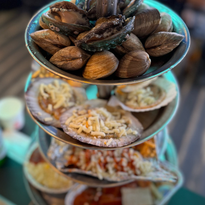 바람도 시원하고 직원분들도 친절했어요. 키조개 전복 가리비 각종조개들 정말 많이 나오고 모짜렐라치즈랑 체다치즈가 듬뿍 올라가서 넘나 고소하더라구요.