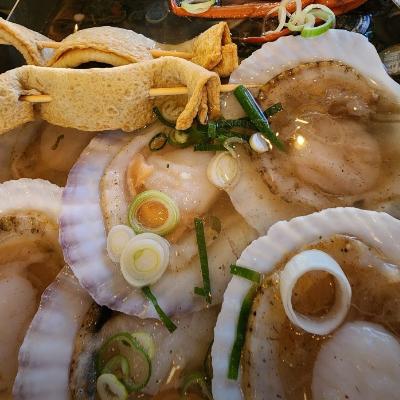 지금껏 가본 조개구이집중에서 비쥬얼이 가장 화려한곳이네요. 양도 푸짐하고 메뉴도 색다른것같아요 바로 앞에 푸른바다를 보면서 먹을수있었어요.