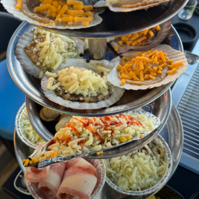 바람도 시원하고 직원분들도 친절했어요. 키조개 전복 가리비 각종조개들 정말 많이 나오고 모짜렐라치즈랑 체다치즈가 듬뿍 올라가서 넘나 고소하더라구요.