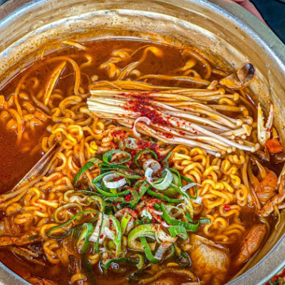 조개상회에선 4단 조개구이는 필수고 삼합세트 시키면 숙주+삼겹살 배부르게 먹을 수 있어요. 조개에 치즈 듬뿍이라 마무리는 개운하게 해물라면 짱입니다.