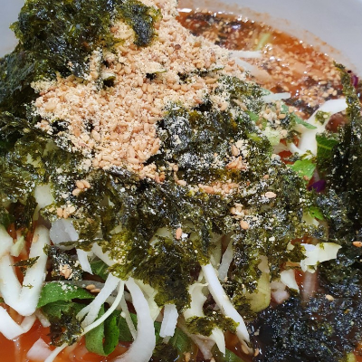 역시 면이 쫄깃한게 국물이 잘 묻어 좋았어요. 사실 일반 소면이었으면 조금 아쉬웠을 것 같은데 정말 면 선택을 잘하신 듯.. 최고 맛있어요.