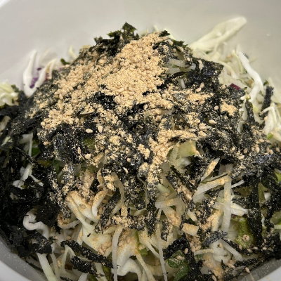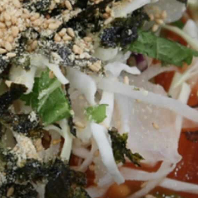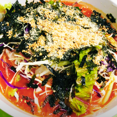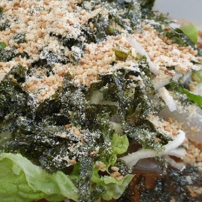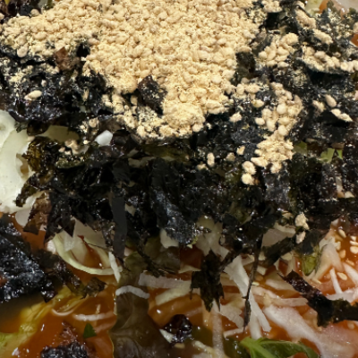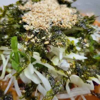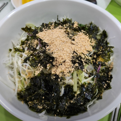 비빔회국수는 국수 위에 야채와 김가루, 회, 콩가루가 가득 그릇 자체도 커서 양이 꽤 많은 편이었어요.