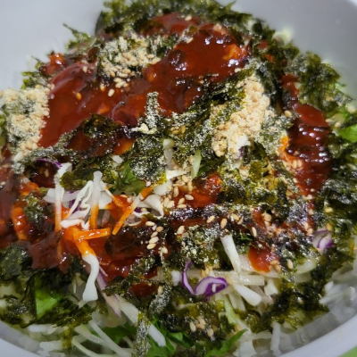 회덮밥 시켰는데 야채 덮밥시킨줄 야체가 푸짐합니다.회국수 회덮밥 회비빔국수 자극적이지 않아 좋아요.맛있어요.