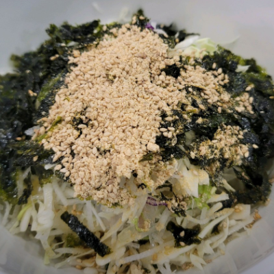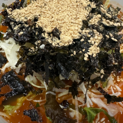 비빔회국수는 국수 위에 야채와 김가루, 회, 콩가루가 가득 그릇 자체도 커서 양이 꽤 많은 편이었어요.