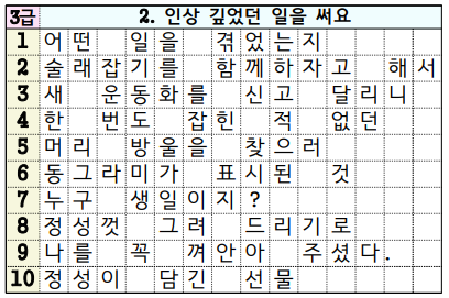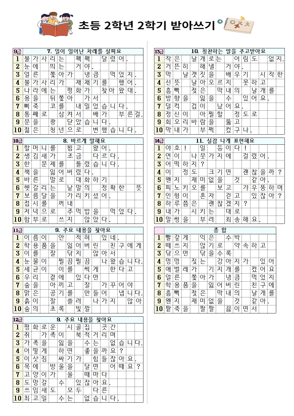 이렇게 초등2학년 2학기 받아쓰기 급수표 자료가 만들어 졌습니다.