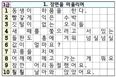 초등2학년 2학기 받아쓰기 급수표는 이렇게 1급부터 12급까지 있습니다.
