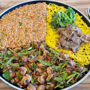 비빔밥이 더 맛있고, 꼬막요리가 더 맛있어요. 국수는 많은 1인분정도고 비빔밥은 2인분정도 되는 양이예요.