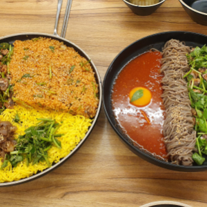 비빔밥이 더 맛있고, 꼬막요리가 더 맛있어요. 국수는 많은 1인분정도고 비빔밥은 2인분정도 되는 양이예요.