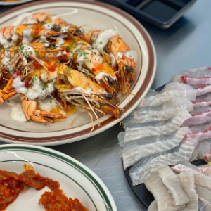 러시아대게1마리+왕새우구이4+제철막회+게장볶음밥1+홍게라면+닭강정+젓갈+모둠튀김