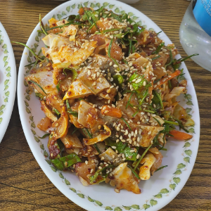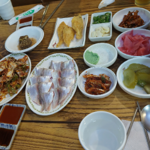 회가 맛있었고 깔끔하게 나와요. 탕 국물도 맛있고 무침이나 칼국수도 맛있었어요.