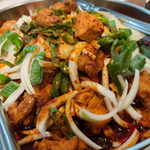 치킨은 색이 빨개서 매울까봐 염려되었는데 역시나 매운맛이예요.