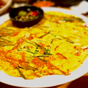 계란이 들어간 파전은 청양고추가 담겨있는 소스에 찍어먹으니 더더 맛있습니다.
