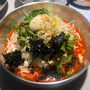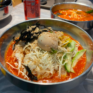 산더미조개칼국수 신선한 조개가 가득하고 비빔국수가 매콤달콤 진짜 맛있습니다.