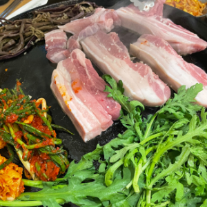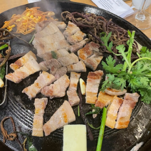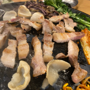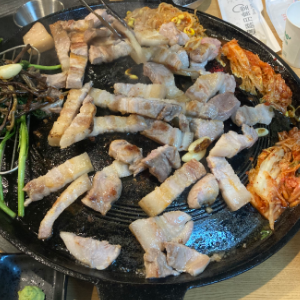 고기 진짜 맛있어요. 솥뚜껑에 구워서 더 맛있는 것 같아요.