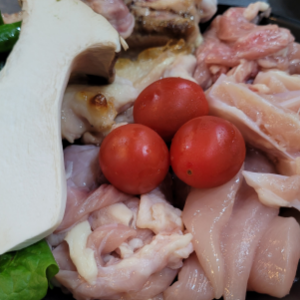 제주무항생제친환경 닭갈비(소금)+특수부위 4종 과 구이야채로 구성되어 있습니다.