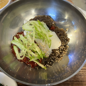 삼겹살만 먹다보면 니글니글해지니까 비빔냉면이랑 같이 먹으니 매콤하면서 궁합이 잘 맞습니다.