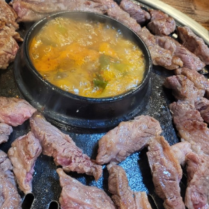 된장국과 숯불고기 3명 테이블에 고기 넉넉하게 먹었습니다.