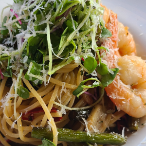 오일파스타 새우가 통통하니 맛있고 마늘쫑과 마늘이 많아서 느끼하지 않아서 좋았습니다. 사이드로 먹으려고 감자튀김도 시켰는데 트러플향이 좋고 양도 많네요.