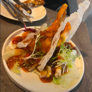 이곳의 돈마호크 탕수육은 꼭 먹어야할 시그니처 메뉴입니다. 튀김은 야들야들한 식감이고 고기살은 부드럽고 아주 꽉 차있습니다.