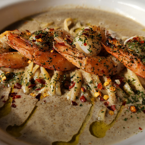 파스타는 트러플향의 풍미가 매우 좋았습니다. 올려진 새우도 간이 잘 베어서 맛있었어요.