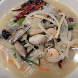 겨울 굴철에만 판매하는 굴짬뽕은 내용물도 완전 실하게 들었고 국물도 시원하고 담백합니다.