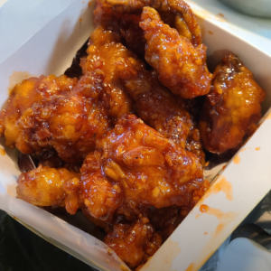 닭강정 포장해 와서 먹었어요. 두명이서 든든하네요. 양 많고 가격 좋아요.
