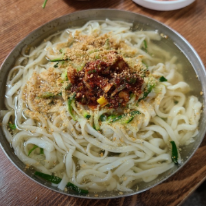깨와 고명이 올라간 서문시장 칼국수 맛집입니다. 진짜 맛이 없을 수 없는 음식이에요.