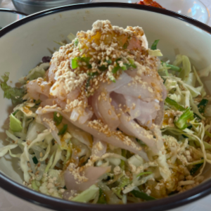 가자미 회무침이 아주 유명한 곳으로 칼국수도 아주 맛있어요. 바닷가라 뷰가 아주 예술입니다.