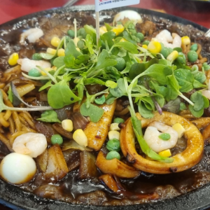 돌짜장이라건 처음 먹어봤는데 엄청 큰 돌판에 짜장이 나와요. 지글지글 군침이 돕니다.