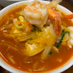 얼큰하고 시원한 맛이에요. 큰 새우와 갑오징어가 매우 신선했어요.