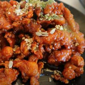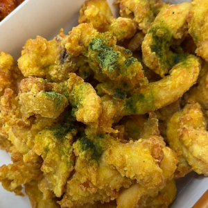 포항초가 토핑으로 올려진 이색적인 영일대명물 포항초닭강정입니다.