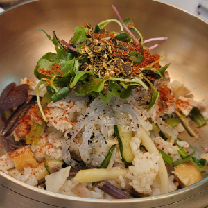 고춧가루로 비비는 독특한 비빔밥은 고소하고 깔끔해요. 굴미역국을 같이 주셨는데 너무 시원하고 맛있었습니다.