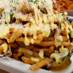 감튀가 젤 먼저 나왔는데 가늘고 바삭한 타입에 소스랑 치즈가 보기 좋게 올라가요.